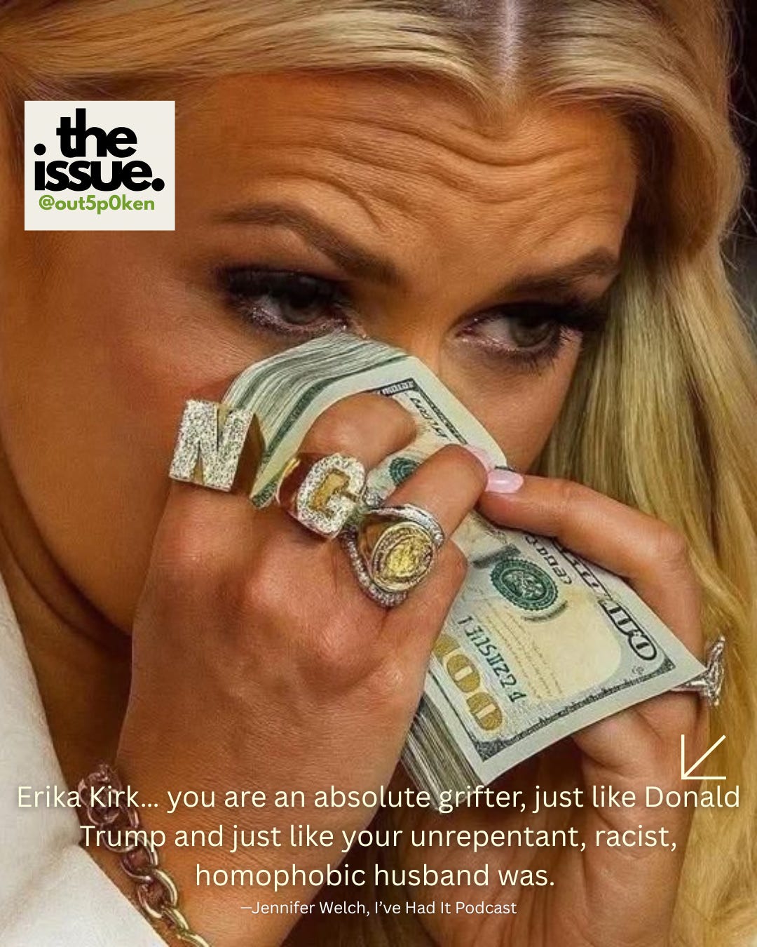 Turning Point USA has grown into a powerful financial and political force, raising tens of millions of dollars each year, near $85 million in 2024 alone, and spreading across campuses nationwide. Its nonprofit structure keeps donor identities and spending largely opaque, drawing scrutiny over transparency. Since Charlie Kirk’s death, fundraising and interest have surged. The money flows as predictably as the performance, a reminder that the ideology Erika Kirk now carries forward is as much about profit as it is about faith and spectacle. I’m not saying Erika Kirk is the new Tammy Faye Baker, but as the fake tears flow, so do the dollar bills.